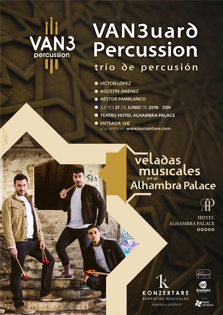 VAN3uard Percussion presenta en las Veladas Musicales en el Alhambra Palace un espectáculo de percusión que transita entre las vanguardias de la música contemporánea y las raíces del flamenco, todo ello ejecutado exclusivamente con instrumentos de percusión y percusión corporal además de la incorporación de efectos y música electrónica.